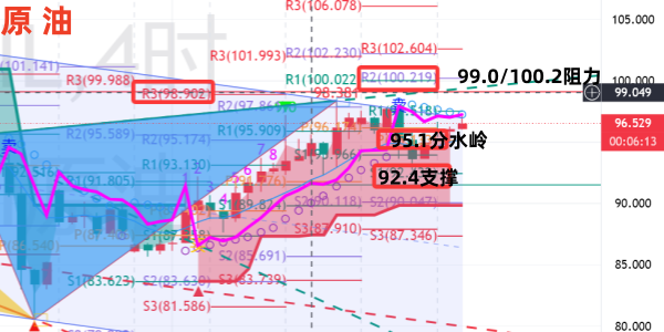 个人建议:回踩95.2±3多,反弹98.9±3空,损各1.0个点,目标2.0/桶!