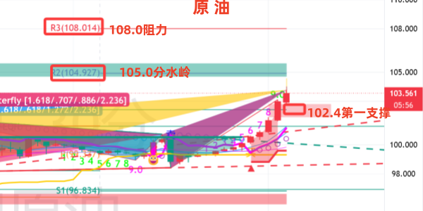 个人建议:回踩102.4±3多,反弹108.0±3空,损各1.5个点,目标4.0/桶!