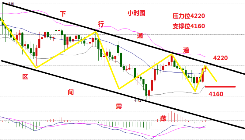 策略二;4220-4200建议做空;止损30点;目标4160(短线)