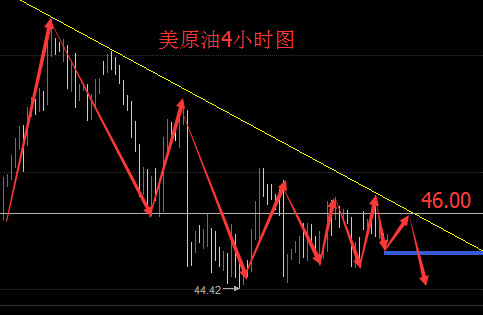 先来回顾昨日行情,昨日从46美元一路下跌至45下方,再开始震荡上行,今日早间油价在46美元附近徘徊,由这段时间的行情可以看出,油价一直处于45-46美元间震荡修复状态,高氏认为价格正在寻找突破口,若是那一方先突破我们顺势做单即可,今日还是按照45-46.3一线高估低渣,下方45.3是我们进多的点位,上方46.3是我们空的点位,从四小时图上看价格现在站上了60日均线上44,这个位置也是髙氏昨天说过的一个前期的关键位置,一旦这个位置企稳,将打开上方空间,重点关注,反之亦然;