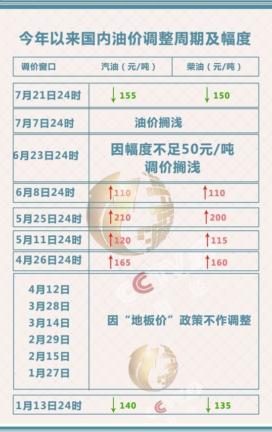 今年以来,国内成品油已经历13次调价窗口,其中4次上调,2次下调,7次不作调整。上一个调价周期,国内汽柴油价格二次“搁浅”。此前,由于国际油价持续上涨,我国于4月26日、5月11日、5月25日和6月8日连续四个调价周期上调了汽、柴油价格。
