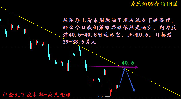 1、首见40.5-40.8附近进空,止损0.5美元,目标39.-38.5附近。(晚间要看EIA数值情况,所以本人日内多单策略暂时不提供)