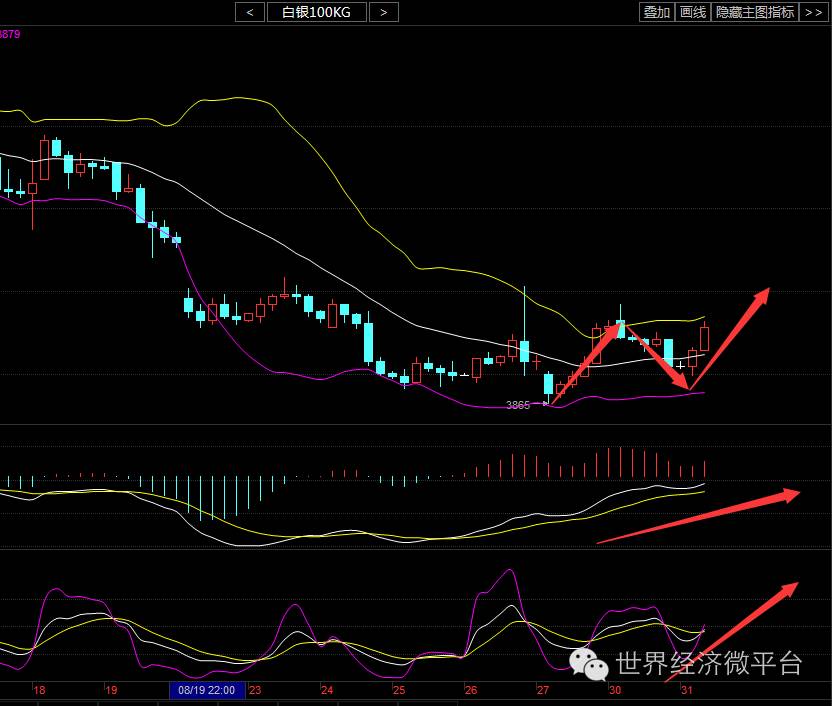 4小时来看布林带指标微微张口,有开口向上之势,K线触及上轨压力附近,MACD日内涨幅缩减午夜后从新拉开区间红柱动能渐强,随机指标KDJ三线交叉向上,短线看多头趋势依旧强劲。子恒认为下方支撑可看3880(有色盘面)附近,操作上关注3980-4000上方压力位。