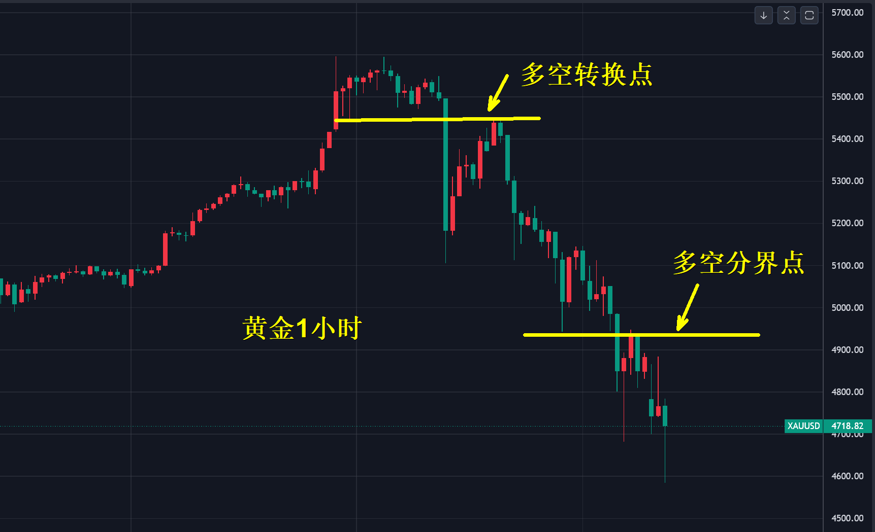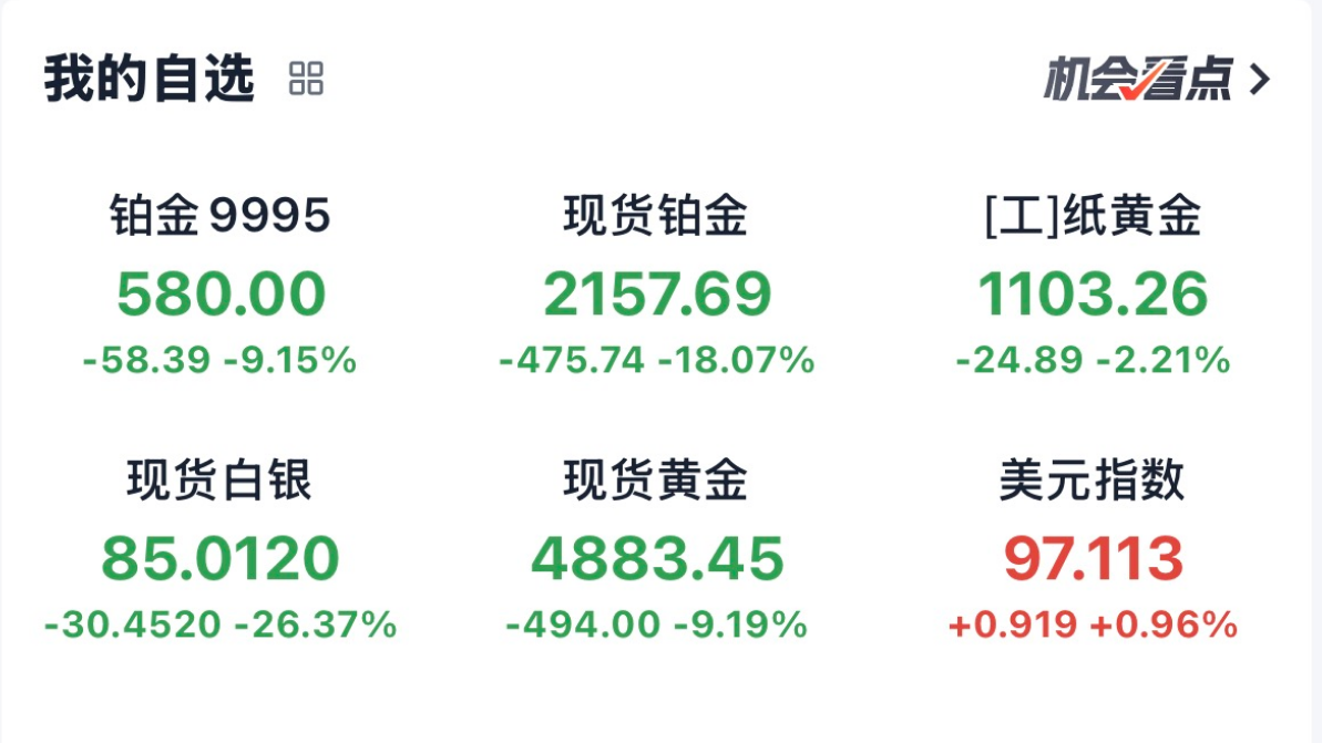 等黄金掉了再买,等一波回调一定参与,这一次不会放过机会,前段时间黄金上涨不时听到这样的声音。 转眼之间,黄金从5600美元掉到了4600美元,跌了1000美金,白银自121掉到73美元,是抢筹码还是交筹码? 真正的牛市往往不给上车的机会,给了上车的机会可能是陷阱,我们都在经历历史,同样也在书写历史,以前没有发生过,没有经历过,任何人无法用经验预判当下。 今天早上金银跳空低开,最高4880美元,最低4580美元,早饭还没吃完黄金就跌了300美金,翻开历史这样的波动寥寥无几。 行情波动越大,投资者越激烈,随着金银基数变大,波动幅度也会变得非常夸张,市场不针对任何人,只针对用过去经验套用当前行情的