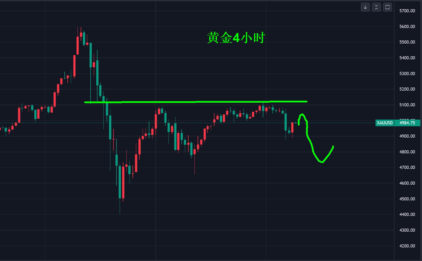 何小冰:别慌!金价保持扫荡迎接马年春节 下周便是马年春节,提前祝大家新的一年财源滚滚,万事顺遂,吉祥如意,马年大吉! 果然价格到达了4880区域,这个位置我们等了两天,真的到的时候也是大半夜和一大早,后面再也没看到了 周三看非农数据的时候,我们就说了两手准备, 一是围绕四小时生命线支撑低多看涨,二是围绕小时图双线下轨4890-4885区域,首次触及必然低多看涨 金价就是坚守四小时生命线,我们也是围绕四小时生命线做了超10次的低多,都如愿上涨攀升 昨日整体形态收口到最小化,只能等待东风来 现在东风来了, 半夜第一次触及4878探底回升4983,超100美元幅度,今早第二次触及4886探底回升4