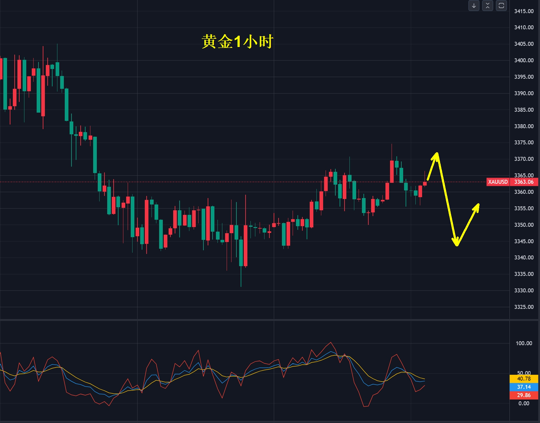人生没有徒劳之行,每一步都意义非凡,过往经历皆能化作成长的养分。生活本就复杂,鲜花与荆棘相互交织。我们带着满腔热忱出发,快慢随心,只要不断向前就好。每个人都有专属的节奏,无需因他人而自我怀疑、乱了阵脚,也别因一时迷茫就放弃前行。这世界纷繁,有恶意与失望,但熬过去就会发现,它们是成长的警示,提醒我们勿成自己厌恶之人。 目前金价整体处于 3300 - 3400 的宽幅震荡区间内来回波动。周二金价于 3331 企稳反弹,得益于基本面消息对多头的刺激。此前金价自 3400 回落,高位震荡后主力出货,引发 70 美金回调,随后在 3340 形成箱体震荡。周三走势符合预期,实现震荡上行第一目标 3370