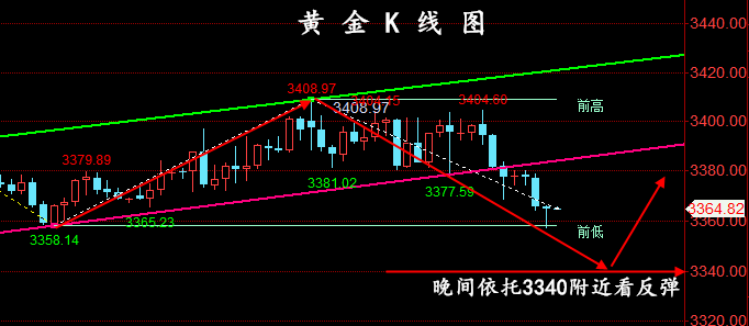 何小冰:金价周一大跌何意?突破3354-3382有答案 上周整体偏向于扫荡, 扫荡式上涨,低点抬升,高点逐次上移 ,但是每次破高过后,面临的是快速冲高回落,回落不破前一个低点,又继续拉升破高 也就是上涨拉升40美元左右,然后冲高回落调整20-30美元范围,将扫荡进行到底 后半周基本是反复测试冲刺3405区域的压力,冲高就快速回落,下探又直接拉升,调整幅度控制在30美元左右 但是今日周一, 这个节奏被打乱了, 由于老美的发癫,今日早盘价格冲3405直接开始下跌,价格跌破上周五反复测试的3380区域,此处也是紫色通道线和小时图双线上轨区域 进一步跌至3367区域,触及快速拉升,反复测试3380-