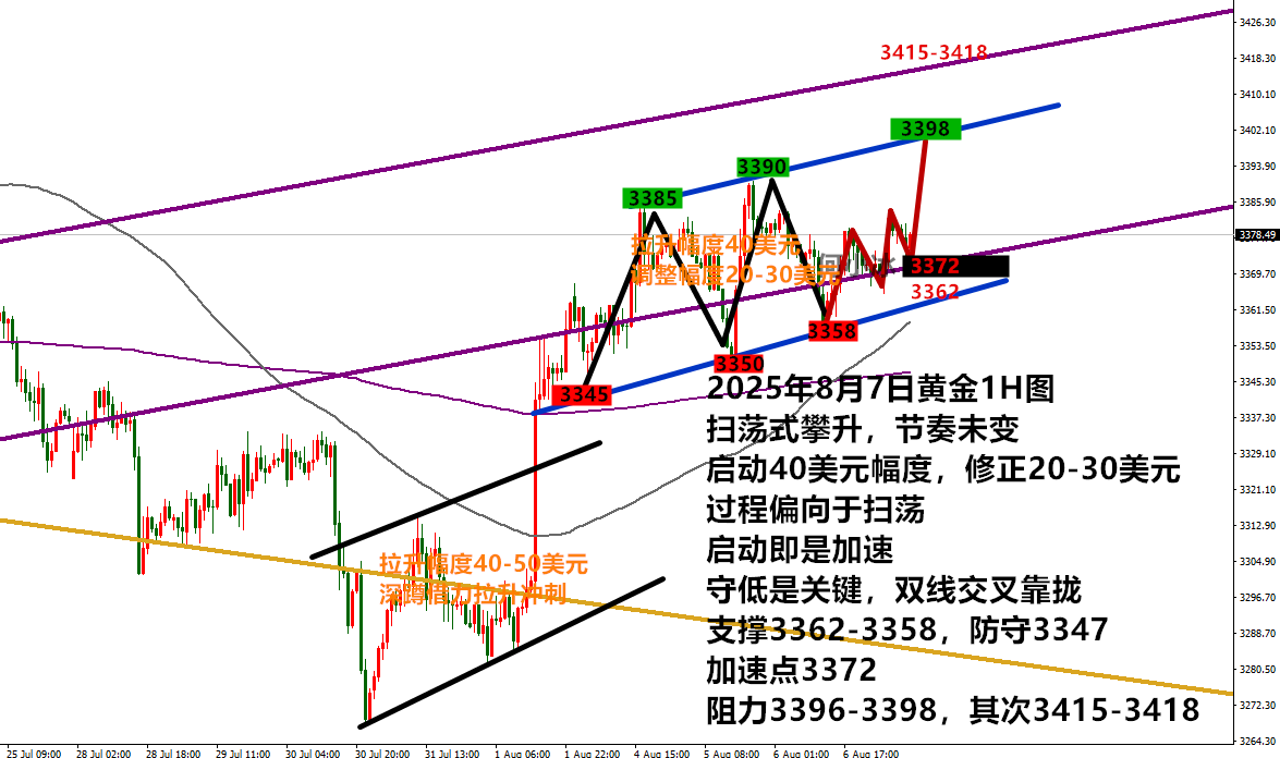 金老虎:黄金弯道超车,9月降息或已成定局,金价反弹3410弱势空 一个交易者真正的成长,是从学会按下暂停键开始的。知道什么时候该收手,比知道什么时候该出手更重要。市场永远不缺机会,缺的是能在机会来临时还保持清醒的人。熬得过震荡的煎熬,才能等到趋势的馈赠,活得久了,自然能看见别人看不到的风景。你不要总想失去什么,你要想想你能抓住什么; 黄金行情分析 简单回顾下昨天整体形态,昨天整体就是跳水拉升的"V形态行情,今天早间开盘波动拉升,刚好以昨天的波动形成了"W"形态,黄金走出这样的形态,主要原因有哪些,简单说下; 1:主要是因为市场避险情绪降温。此前,由于地缘政治冲突以及特朗普的关税政策等因素,市