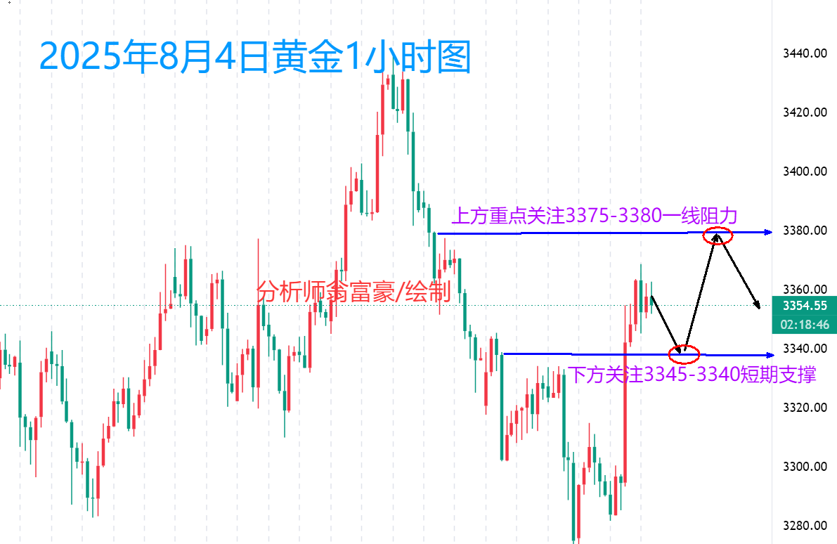 张津镭:避险+降息双驱动,黄金中长线仍看涨! 上周五,由于疲软的非农数据推动降息预期急剧升温,美元指数重挫,下破99整数关口,创4个多月来最大单日跌幅。美债收益率集体跳水,现货黄金在非农数据公布后直线拉升,大涨逾70美元。本周事件不多,但最为重要的还是美国关税问题,周三开始开始实施“对等关税”,一旦特朗普有变故,金价自然还有的涨。 周一(8月4日)上周末因非农上涨不少,但开盘却回落不少,不过却还是高位徘徊。说明后续影响还在。另外,美国推迟部分关税生效日期至8月7日,让市场避险情绪仍存,也给黄金提供了不少支撑。 可以说,现在全球经济不确定性加剧,还有疲软的非农数据使市场对美联储9月降息的预期大