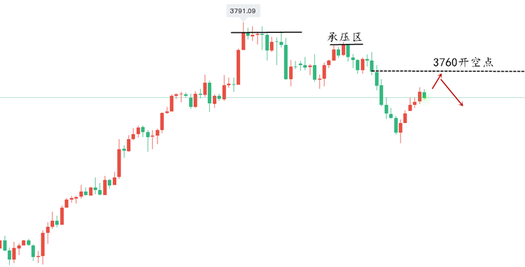 昨天黄金是不是就回落下来了,没有再创新高!从日内3780走到凌晨3717幅度达到63个点,日线成功转阴,符合预期!那么在昨天的视频中我就强调过,黄金以看多不追多的思路对待,要看日线转阴,有回落修正。 并且说到了可能出现的三种情况: 第一,是反弹3781—3791压力去看回落; 第二是跌破3751后,反弹看二次延续向下; 第三,是即使破高3791高点,在3800关口也是要看回落调整的。 最后是不是走了第一种情况,反弹3780压制横盘,美盘凌晨往南下走了,我们说的听进去了就吃到肉了,咋们不说似是而非的话,上就是上,下就是下。 那么不同的情况不同的应对方式,我们要有计划,有方法,把可能出现的情况都