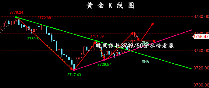 目前黄金已经不在是单边涨的行情,黄金技术面开始大修复了,我们思路以顺势跟随为主,多空把握好节奏,现在我们屡屡大趋势了,收到最多的问题是不是大跌开始了?是不是黄金见顶了?日线昨天收了阴,上个交易日又是一个模糊的墓碑蜡烛形态,目前只是可以确定短线遇见压制,不可以确定大趋势见顶周线还是多头,而且短线的修复并没有破坏的多头趋势,所以今天操作上我们继续保持回踩做多的思路进行。如果你目前操作不理想,希望田浩洋能让你的投资少走弯路,欢迎前来沟通交流! 从4小时分析来看,下方的有效支撑则维持于3718-23附近区域,上方压力关注3756-65一线,操作上以回踩做多为主,中间位置一律多看少动谨慎追单,耐心等待