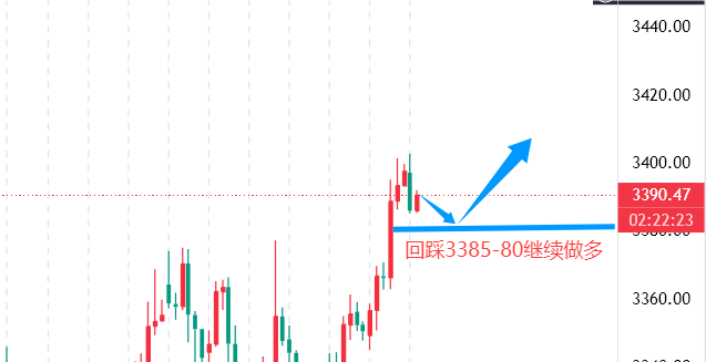 如盈财女:7.22黄金强势走高关注回踩调整!原油反复震荡 黄金周一开盘震荡上涨,在向上突破3360-65区域后多头转强,晚间突破3377区域后多头迎来加速上扬,最高至3302一线,尾盘横盘震荡,日线以大阳线收盘3397附近!黄金暂时打破小区间震荡格局,但多头力度并不强势;尤其是今天早盘稍微刺破昨天高点1美金后迅速回落,当前已经下破凌晨低点3391区域,行情强势格局不在。 从日内周期来看,昨天快速上涨后,行情陷入严重的超买状态;不过,昨日60余美元大阳线支撑多头,预计行情还会有反复;接下来重点依然是前期高点3403压力密集,突破前随时可能会展开调整;并且3282上涨以来,当前也正好触及平行通道