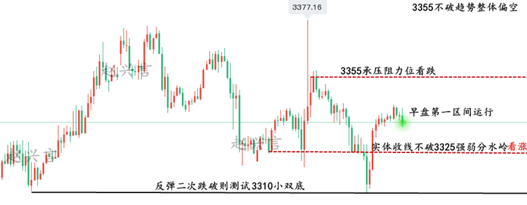 黄金市场最近持续震荡,上下洗盘让很多人不知道如何做,黄金到底要上涨还是下跌?对于多空方向有些迷茫,觉得不好做,天天做天天亏,不少朋友加到我寻求指导。 首先,震荡行情有震荡行情的好处,区间操作把握关键支撑压力多空都可以参与。觉得不好做,一直亏的人肯定喜欢追涨杀跌,所以导致反复被损。 其次,如果你是做短线就不要操心中长线的大方向,没有任何意义,做短线重点关注日内的多空方向,先把这个做好,有多余资金和仓位再等合适时机布局中长线。 你说现在的行情不好做,但是本周我们做的非常顺,昨天我明确表示黄金看震荡,高抛低吸的思路对待,不要追涨杀跌。 精确给出3320—3310支撑位,看看晚上是不是就上来了,最低