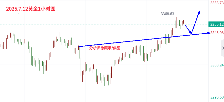 自昨日至今我们始终坚定看多黄金。当前只要金价能稳守3310低点之上,并形成持续态势,一场暴涨行情便呼之欲出,而目前黄金走势正契合我们的预期。今日金价在3333附近获得有力支撑后开启上涨,周五持续上攻成功,突破4H周期开跌位置3346这一关键,突破意味着晚间金价仍有进一步上升空间,上方需重点关注3365分水岭。 从技术面来看,黄金1小时均线向上穿插,形成金叉彰显出多头,强劲的上升动力犹如开足马力的战车一路向上。午后黄金突破关键价位后回踩3331附近支撑,随后继续上扬,短线在此处已构筑起坚实支撑,目前上方阻力在3359-3364,下方支撑在3346-3341,尾盘操作上徐顾承建议反弹高空为辅,回