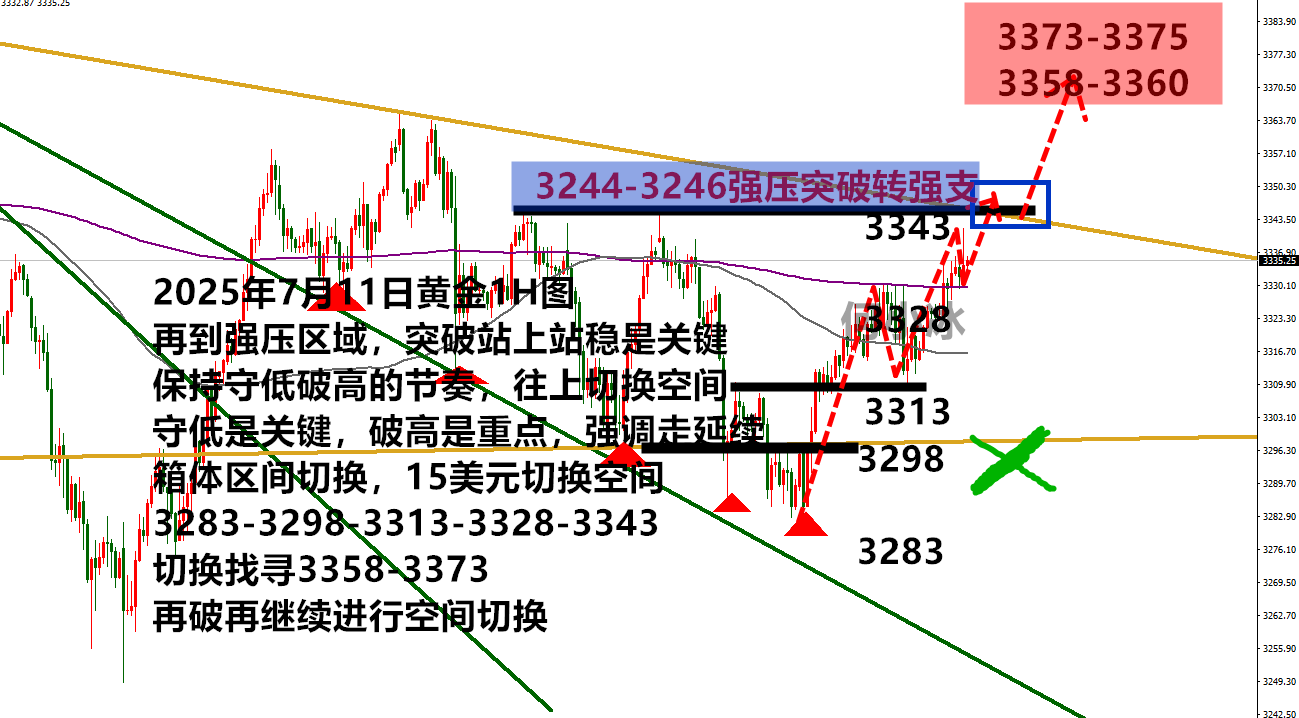 7月7日,国家外汇管理局公布了截至2025年上半年的外汇储备规模数据,外储规模在时隔8个月之后重新回到3.3万亿美元以上,这是否意味着普通投资者又迎来了黄金投资的窗口时点?跟随央行的行动而行动,看上去合理,但事实却远非那么简单。央行对于黄金储备的增持或减持并不是影响黄金价格的绝对重要因素,这是关键! 日内黄金操作策略一览! 早盘在7点在群里公布了对于今天走势的一个预期,可惜行情直接突破3330一线那么就需要转变我们今天的一个思路了,9.11分的时候通知所有实盘在3326附近进场多单,止损3319,行情反弹至3336部分减仓出局,剩下的上移止损至3330一线,继续看能否给到3340-42一线的