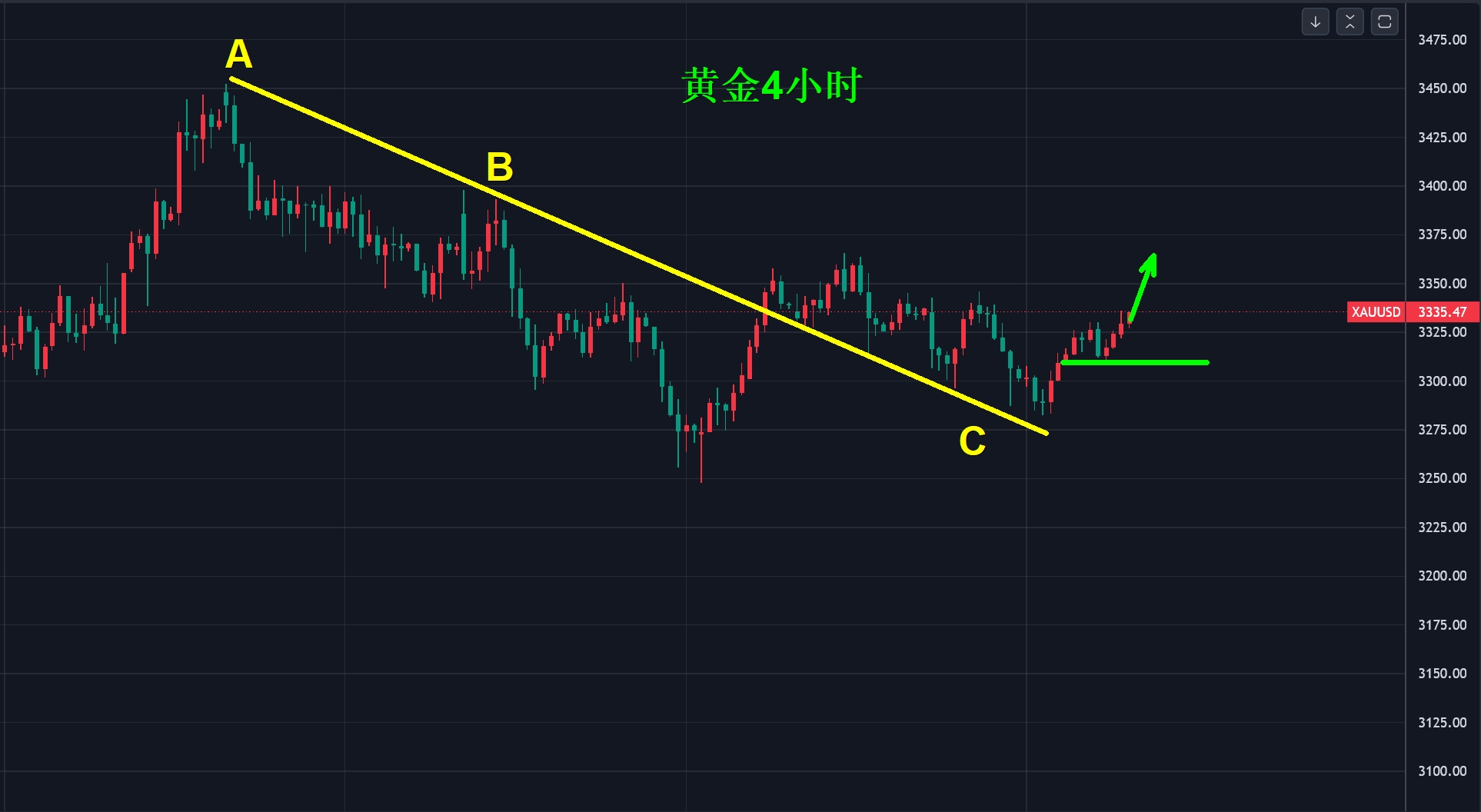 周五(7月11日)亚洲时段,美国总统特朗普在社交媒体投下"关税核弹",宣布自8月1日起对加拿大商品全面加征35%关税,较现有税率暴增10个百分点。这一决定犹如平地惊雷,瞬间点燃市场避险情绪,现货黄金价格应声飙升,盘中最高触及每盎司3336美元,为近三个交易日新高,有望连续三个交易日上涨。 周五黄金开盘后随着宣布下个月对加拿大商品增加关税,瞬间增加了市场的避险情绪,黄金也是飙升。目前从盘面上来看短期上方关注四小时MA200均线和误差带重合处以及布林带上轨3341-3343范围,向上偏差关注周线MA5均线3350-3355范围,更上方关注上周高点3366附近,下方支撑留意一小时MA10和MA20