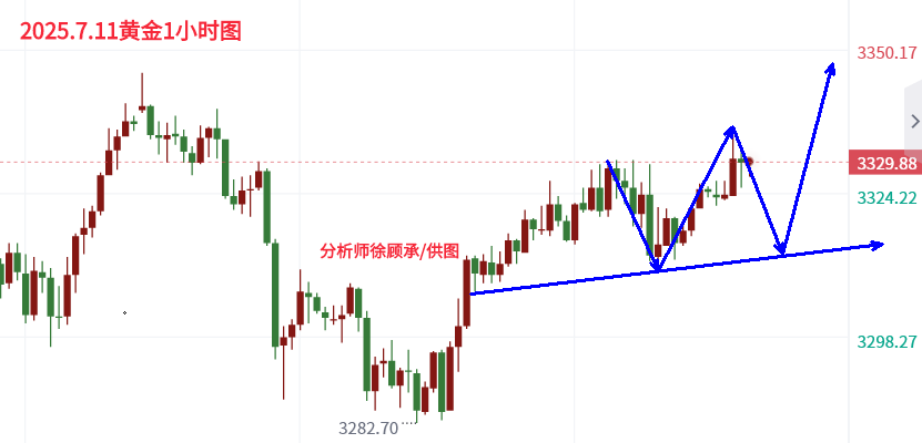 技术面,四小时下降趋势线已经随着时间的推移,换来了空间上的向上突破。所以,对应的四小时 MACD 呈多头信号。所以,今天不适合去空。 2 小时 MACD 呈空中加油姿态,这种信号往往预示着价格还有一波上行。 1 小时 MACD 呈现零轴上方金叉。 今天的支撑位于 3319 美元水平。 60 分钟, 2 小时, 4 小时形态上有明显的构筑上升 "N" 字走势的迹象。 尽管金价出现了上述多头信号,但依旧没有脱离 “钟摆”结构。所以如果多,就是以 3319 为支撑,分批多。 10 刀以上利润起码要减仓,不要总想得一口吃一大波,不现实,多空切换太快。 薛晓庆分析观点写于 2025 年 7月11日