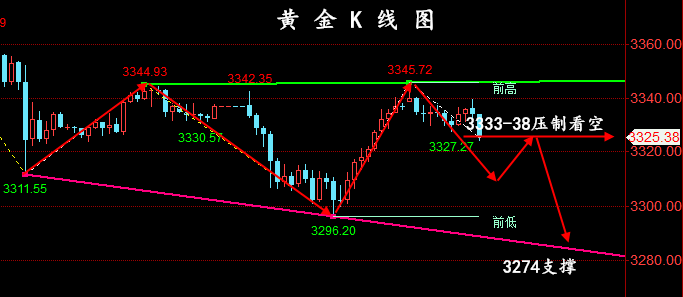 何小冰:金价结果还是涨,过程消磨人 昨日金价最终结果, 下探确定3296区域的支撑,探底回升拉升上涨到今日早盘触及3346区域 ,一鼓作气完成确定支撑和拉升冲刺,其他时间都是在横盘消磨人的耐心 而3296位置刚好也是靠近昨日我们提及的绿色趋势线沿线位置 ,第三次下探确定支撑拉升反弹,关注上方高点突破情况,能够突破成功,后面进一步向上切换空间 今日周二早盘又是急涨冲刺3346位置,然后冲高回落,持续徘徊在3330上下区间,又得让人考虑很多种可能 一是区间扫荡的可能,冲高又到3344-3346区域的阻力位置 ,迈不过去承压再去找3300及其下方区域的支撑,等时间到了再重新探底回升拉升 二也是区间
