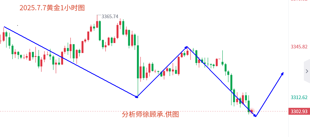 当下不少人嘲讽特朗普的“大而美”法案,可事实真这么糟吗?美元虽跌,但美股表现显示部分目标已达成,现在就断言法案是压垮美国的稻草,未免太乐观。美国经济实力不容小觑,虽背负巨额美债,但长期数据向好。“大而美”法案是****未来,特朗普似有水平的牌手,不可小觑。 黄金早盘开盘便大幅下挫,日内高低点价差超30美元,周末的利多因素未能扭转多头颓势,空头力量占据上风。6月收官周黄金重挫,7月开篇周又探底回升,市场多空博弈激烈、震荡格局未改。目前黄金已跌穿非农低点3311,行情弱势尽显,后续大概率冲高回落。短期阻力在3325 - 27区域,此为日内强弱分水岭;3343 - 45区域是多空关键分界,不破则看