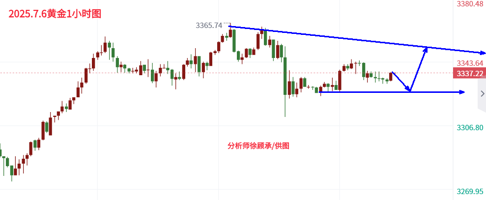 莫轻易向他人敞开心扉、倾诉衷肠,这世间谁没几段隐秘往事?也别随意宣泄情绪,毕竟悲喜并不相通。回首交易历程,单边行情里懊悔与惊喜常相伴。不妨放下过往,专注布局未来,让上半年遗憾,成为下半年惊喜的伏笔。 黄金上周五受节假日氛围影响,黄金市场并未走出显著突破行情。此前非农数据虽利空,金价却快速探底后回升,使得短线多空力量陷入胶着。周五早间,金价短暂横盘后选择上行,虽未能突破上方3345关键压力位,但最终以阳线收盘,为多头增添了期待。 当前日线呈现三阳一阴一阳的波动形态,周一走势至关重要,若能延续收阳,多头或将重拾上升动能;上方压力仍聚焦3345,突破后有望挑战3365-3380区域;下方支撑则关注