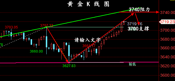 早盘黄金开盘后即表现居高震荡,亚盘时段面对3700整数关口也出现一波小回调,但仅回撤至3685附近,午后黄金行情再出现异常拉动回升,冲破3700整数关口,目前最高点推触及3728一线。周末文章给了上周收盘在3685一线说明还会继续冲刺3700关口,如果多头延续,那么站稳3700上方也是顺理成章,目前已经全部实现,如果大家关注我本人田浩洋文章或者公钟号,那么你就会提前了解行情的走向以及趋势方向,做多依旧是目前的趋势。如果你目前操作不理想,希望田浩洋能让你的投资少走弯路,欢迎前来沟通交流! 从4小时分析来看,下方的有效支撑则维持于3685-95附近区域,上方重点压力则维持于3728-3730一线