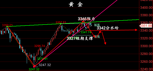 现货黄金: 本周的非农就业报告,将成为投资者判断美联储政策方向的关键线索。经济学家预测,6月非农就业岗位可能增加11万个,失业率或从5月的4.2%微升至4.3%。若就业数据表现疲软,市场对降息的预期可能升温,从而推高金价。相反,若数据强劲,黄金的短期涨势或受限,但长期来看,通胀压力和贸易不确定性仍将支撑金价。此外,投资者还需关注美国6月挑战者企业裁员人数,这一数据也可能影响市场情绪。黄金方面,周三黄金价格总体呈现上涨的状态,当日价格最高上涨至3359.87位置,最低下跌至3327.47位置,收盘于3356.88位置。针对周三黄金在早盘期间先承压下跌,之后测试到四小时支撑后止步上涨,时间点在欧
