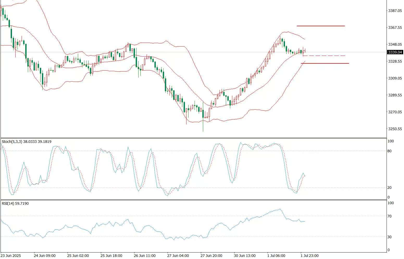 现货黄金昨天收盘大幅攀升,金价自昨天早盘的低点大幅反弹,投资者正在评估美国持续膨胀的财政赤字、以及与贸易伙伴达成协议的可能性,导致美元走软。而美元走软又为金价提供了一些支撑,但金价仍处在5月中旬以来占主导地位的区间内。 风险消息数据方面! 美联储方面:美联储主席鲍威尔周二在葡萄牙举行的央行会议上重申,在启动货币宽松政策前,仍需等待更多经济数据,但他也未完全排除7月降息的可能性。 关税方面:美国总统特朗普周二重申,对大部分国家的对等关税90天暂缓期7月9日期满后,他无意延长。 贸易不确定性也引发对黄金的避险买盘。7月9日关税大限邻近,假如其他国家没有拿出诚意谈但,可能收到关税大幅提高的通知。