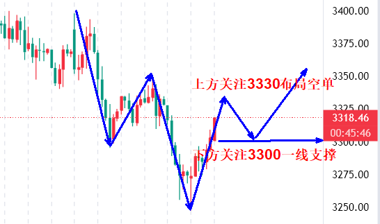 昨日黄金技术面先抑后扬迎来探底回升深v反弹,亚盘快速向下回落刺破3250关口企稳回升,午后欧盘以及晚间美盘接连拉升刺破3296关口承压迅速回落,晚间美盘前二次回踩企稳3270关口迎来反弹回升,最终金价在晚间美盘加速冲高突破3300整数关口,日k线报收探底回升反包中阳,整体金价在经历连续一周的调整回落后最终在3250关口获支撑企稳反弹回升,今天黄金开盘从3302一线然后调整后一路上扬,目前多头冲击3320一线有继续冲刺的势头,但是我们关注3324一线这里多空重要分水岭位置,如果成功站稳上方,那么说明行情已经反转了,那么回踩我们再找机会多,否则如果不能突破,那么我们可以找进场位置布局空单,如果你