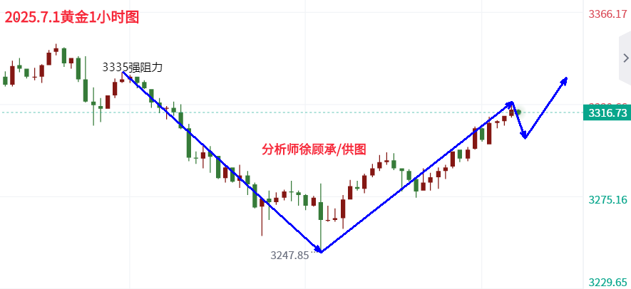 高晓峰:7.1黄金反弹有望延续,上方3330布局空单 黄金日线维持高位震荡,价格在3250一线暂获支撑。小时图级别,K线沿短期均线呈稳健多头排列,于前期短期压力位附近横盘整理,盘中回撤力度微弱,技术形态暗示反弹有望延续。4小时图上,短周期均线金叉发散,短暂回调完成技术修正,短线走势保持偏强格局。上方重点关注3330-3340区域压力带表现。 黄金建议:3325-3330布局空单 止损3340 目标3305 文/高晓峰(jcx68008)专业国际市场点评 ,本人解读世界经济要闻,剖析全球投资大趋势,对原油、黄金、白银等大宗商品等有深入的研究,以上内容属于个人建议,因网络发文有时效性,仅供参考