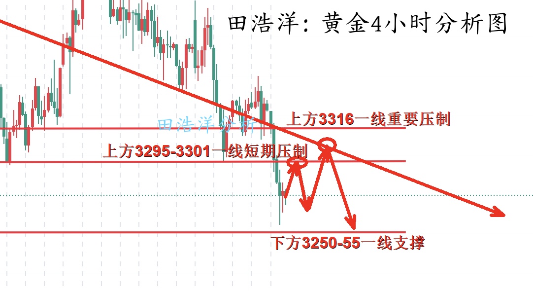 黄金今天开盘在3272一线后反弹最高至3281一线开启下跌,最低跌至3247一线反弹,对下方支撑进行了试探后进行反弹,反弹力度不可谓小,现在反弹最高反弹3277附近,我们刚才也在3263附近多单进场,目前已经获利出局,上方我们反弹3277-81一线短期压制不破再轻仓空,毕竟上方压制依旧比较强,反弹做空依旧是目前的主要趋势。如果你目前黄金操作不理想,希望田浩洋能让你的投资少走弯路,欢迎前来沟通交流! 从4小时分析来看,上方短期阻力关注3277-3281一线附近,关注3295-3301一线压制,重点关注3316一线压制,操作上依旧反抽继续主空顺势下看回落,下方短线支撑关注3250-3255一线附
