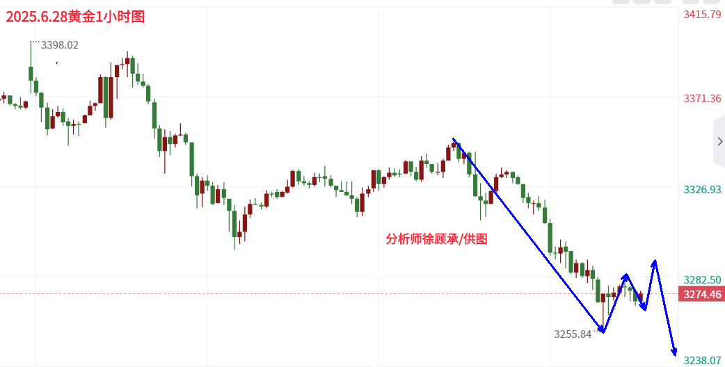 当前黄金市场表面价格趋于平稳,实则暗流涌动。中东地缘局势缓和,削弱了黄金的避险魅力,致金价回落。同时,历史高位套牢盘在反弹时不断止损离场,多头力量受挫。短期来看,地缘局势缓和、贸易政策乐观预期以及技术面调整压力,或使金价延续偏弱态势。但若关税影响有限、美联储提前降息,金价有望迎来上行契机,市场波动仍存变数。 上周五黄金行情急转直下,开盘后便开启单边下跌走势,一路势不可挡,接连击穿前期多个支撑位。至欧美盘时段,价格在3255附近暂时企稳并展开反抽修正,最终收盘于3274,单日跌幅高达72点,日线以大阴线报收,空头力量尽显。目前空头趋势主导市场,前期支撑位已转化为潜在压力,短期均线向下交叉、布林