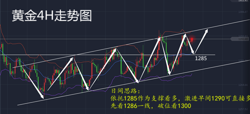 本周相对来说行情走势空间还可以,4小时来回的区间震荡,拿捏好关键点位,利润也是很可观的,没抓到的可以好好总结下原因。一转眼今日又是周五收官,最近连续几周收官都会爆出黑天鹅,今日能否再次走出一波大行情,我们拭目以待! 周线收官上破新高还是再陷区间震荡? 金价早间开盘后震荡小幅回落修复最低1288一线,低点逐步