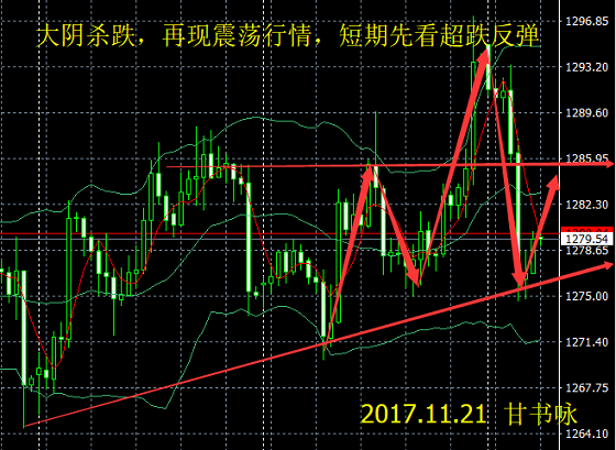 甘书咏:11.21黄金急跌重回震荡 日内黄金原油操作解析 周一美元出现较强的反弹,另外市场跟风卖盘情绪强烈,黄金遭重挫创两个月来最大跌幅,悉数回吐上周五涨幅。美元走强、美国加息前景和本周是假日周等因素重压金价。此外,随着美联储12月会议临近,美联储将加息的预期进一步升温,这也加剧了金价走软的可能性。 黄金价格虽