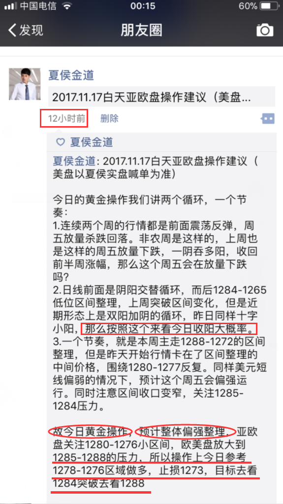 对于周五的行情我早间已经在动态里说的很清楚明白了,我说美元今日调整之后继续看弱。黄金今日收阳大概率,上方看1288。我也只看到了1288,确实因为太晚了又是周末也没多拿直接落袋为安休息了,没想到后面直接到了1296一线。夏侯的投资朋友只赚了6-8个点,早知道行情如此大涨了十几个点6-8个点确实少了一点。但是市场没有早