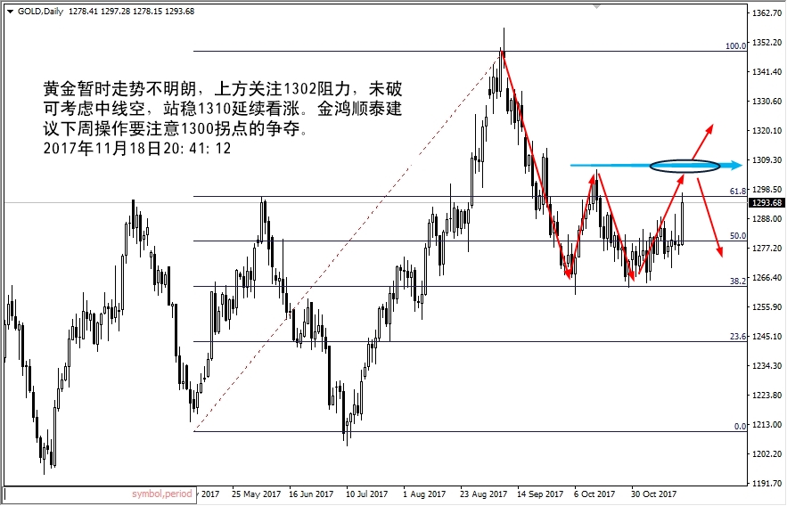 邹鑫悦:11.19国际黄金平缓中走强,黄金下周解析 我知道大多数人都是以短线操作为主,周五凌晨黄金的一波上涨我知道很多人跟我一样都是做了空,说实话我真没想到会这样涨上去了,要不是朝鲜搞事情中东局势紧张,加之通俄门事件取得进展碾压税改推进影响,我相信黄金后半夜是肯定会下跌的,现在说再多都是马后炮,鑫悦希望大