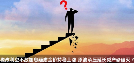 前言: 一个成功者,并不是他们在人生道路上有多么的一帆风顺,也不是他们的能力有多么的超群,而仅仅只有一个原因,就是善于控制自己的情绪,能在狂风暴雨中看到美丽的彩虹,甚至能在一败涂地中看到美好的将来,并时刻保持一种良好的心理状态,不为暂时的失败沮丧。 初请人数增加叠加税改疑虑黄金受到支撑 美国当周初请失业
