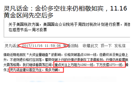 朱彘羽:11.16黄金晚间区间操作为主,高抛低吸稳健获利 基本面解读: 美国通胀和销售零售数据表现喜忧参半,但整体好于预期,黄金价格在数据公布之后短线上扬一度逼近1290美元,但随后回落再度跌破1280美元。津巴布韦总统穆加贝被军方扣留,但该国军方发言人随后发表声明否认发动政变,称总统目前安然无恙。周三稍早前,路透
