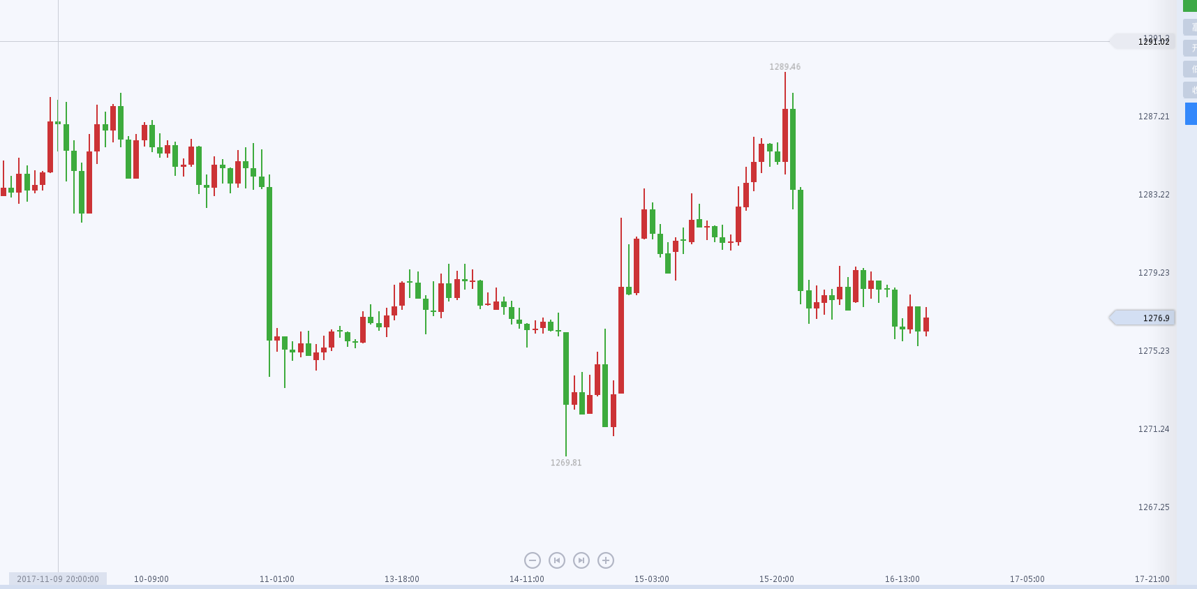 昨夜,美盘开盘公布的万众瞩目的两则重磅数据,美国CPI和零售数据符合预期,较上月增速大幅回落,美国10月核心CPI月率同比增幅创4月以来新高,显示出通胀疲软趋势仍在持续,通胀疲软带动现货黄金短线上扬。金价升至10月20日以来最高,美盘最高上探至1289.45美元,并长期于1288美元一线震荡,一度冲击1290关口上方未果,然后