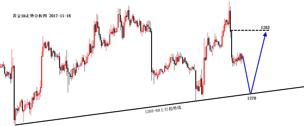分析师张琅:11.16黄金操作建议,回落午后看反弹 文/分析师张琅 黄金早间开盘1277.9,早盘最高1279.5。午间行情出现技术面回落,最低触及1275.3一线,目前黄金小幅反弹维持于1276.2上方运行。 11.16午后黄金技术分析: 黄金早盘延续昨日砸盘影响惯性走低,最低触及下方1275.3一线。目前整体上依然关注上行通道下轨附近1274.