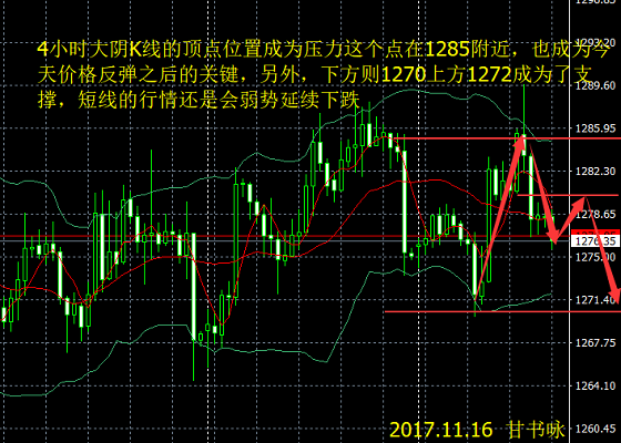 甘书咏:11.16黄金下跌行情并未走完 日内黄金原油操作解析 周三黄金市场上演过山车一幕,受特朗普税改不确定性影响,美国股市下跌,美元继续承压,避险资金涌入黄金市场,推高金价,不过在晚间公布的CPI和零售数据显示,美国核心通胀上扬,零售数据整体利好,消费者为美国第四季度GDP打下良好基础,这些都支撑美联储在今