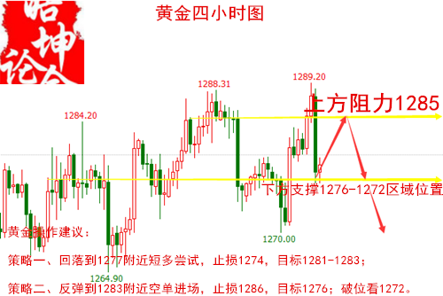 黄金技术分析,走势预测反弹继续看空! 从日线图来看,金价仍处于顶部反转然后在冲高回落,演示了一波过山车行情。从技术面上分析,昨天还是处于一个高低位震荡的趋势,上方阻力从1282拉升至1288,下方支撑在1275,其实只要把握好阻力和支撑位置,整体行情是大赚,欧盘上行测试1285站稳之后,黄金的阻力就在上移为前期的一个