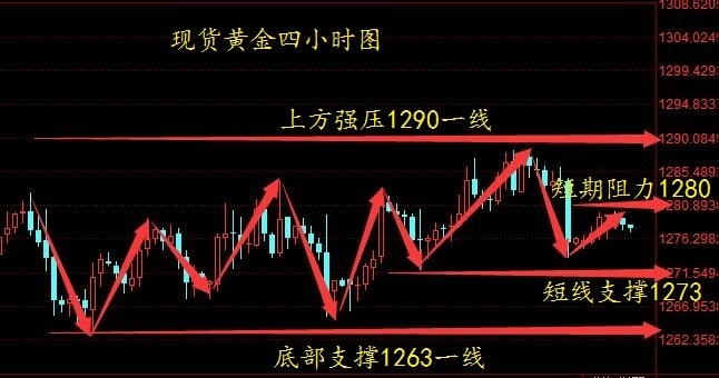 盈利,等于小的亏损,加上大大小小的利润,多次累积。做到不出现大亏损很简单,以生存为第一原则,当出现妨碍这一原则的危险时,抛弃其他一切原则。 现货黄金震荡横盘,现报1277美元/盎司,支撑压力位高空低多,压力位1280-1282,支撑位为1272,早盘1279-1280附近做空,目标1276-1272,行情波动小,早盘在1280-1276区间横盘