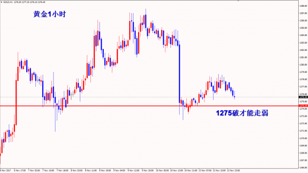 消息面:周二(11月14日)黄金价格开盘后持于1277美元附近交投,周一黄金价格盘中维持反弹,在测试1280关口后遇阻走弱,最终陷入盘整;在上周五金价暴跌失守1280关键位置之后,尽管周一反弹收复部分跌幅,但是金价依旧持于1280位置下方陷入震荡,隔夜金价最高上探1279.6美元/盎司,最低触及1274.2美元/盎司;一天下来5-6美