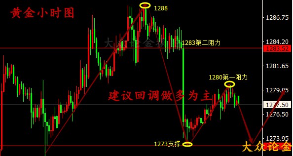 投资交易中技术分析永远只能是辅助,而策略思路才是基本。交易中或结价操作中,必须果断,在对的方向里坚持,而当方向错误时,调整战略就是进步,转身就是盈利。道路虽有坎坷,但跟随市场的指引总会有柳暗花明的。 黄金12号合约 从小时图走势来看,今早开盘后黄金继续走低,K线价格交投于布林带上轨通道内1278附近,布林带整