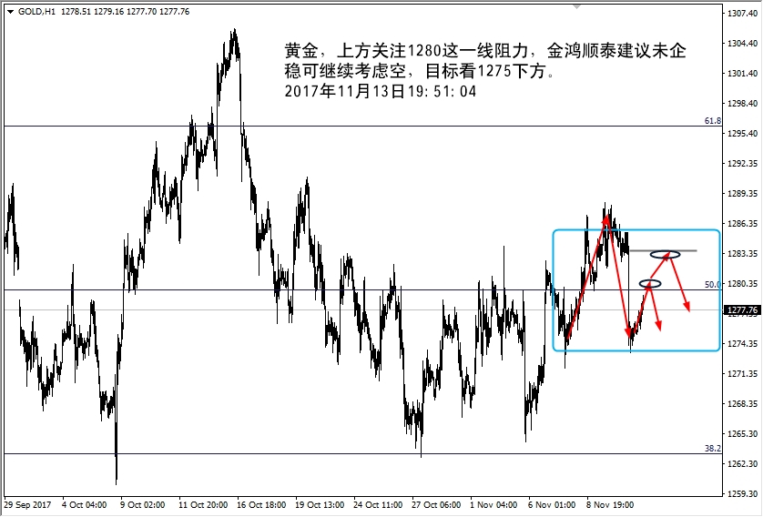 人与人之间的沟通,不是说服对方,而是理解对方;不是告诉对方我多么有能力,而是告诉对方,我愿意接受你的想法,体恤你的感受。 【黄金解析】 ①黄金行情技术分析:今日目前金价走势基本和上周一的走势一样,持续慢涨反弹向上,目前欧盘突破了亚盘高点1277一线位置,形成了向上的格局,那么亚盘上涨欧盘延续,美盘预计还会