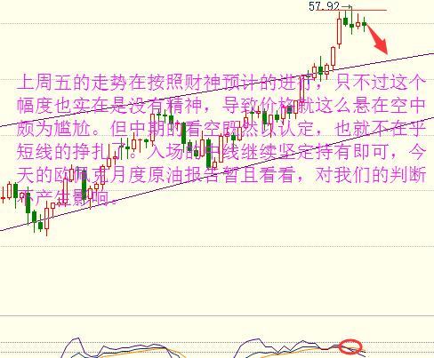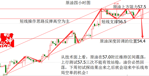 原油基本面分析,中线布局只需等待高点确立! 上周五,原油同样遭遇黑天鹅,但好在56.50支撑强势守住了,反弹回到56.80附近。目前从技术形态上看,原油高点似乎已经形成,很多投资者现在都是在等着放中长线空单下来解套低位空单。但皓坤老师认为,周初原油走势仍然会运行在震荡上行的趋势中,目前消息面上OPEC与美国页岩油商