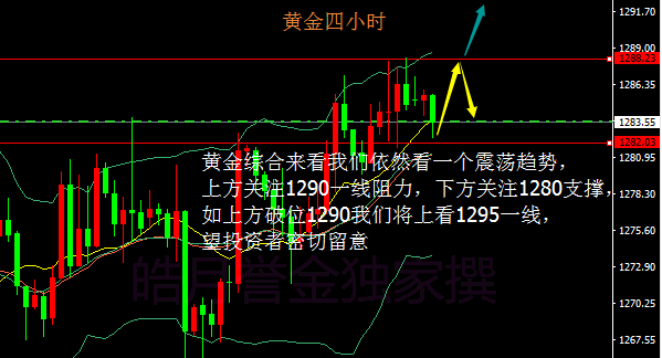 罗易彬:税改分歧打压美元 黄金两难震荡以待 今天(11.10)现货黄金在经历了本周的不断新高之后回归平静,早间开在1285附近,亚盘基本围绕1285上下波动,临近欧盘金价下探至1282附近,总体上来看依旧是窄幅震荡,今天行情小一方面是因为消息面清淡,再一个就是美盘因为节假日债市休市。今天欧盘没美盘不出意外消息的情况下,