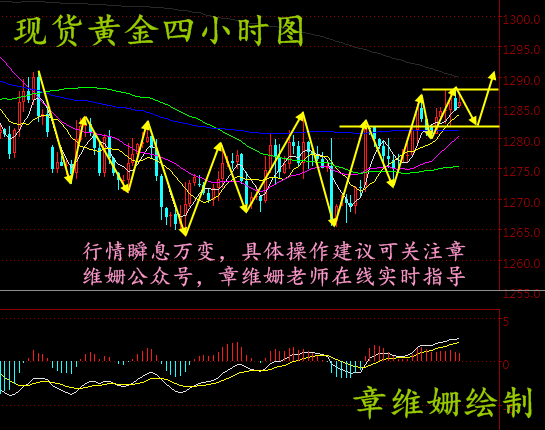 黄金技术分析 技术面分析来看,黄金日线图上收阴线,MA5/MA10均线金叉运行于1272附近形成支撑,MACD指标于0轴下方延续金叉上行,红色量能增加,多头动能充足;日线RSI拐头向上,Sto金叉向上发散;4小时图上看,布林带指标整体向上运行,但金价于1288一线受阻,MA10均线首要于1283附近形成支撑,布林上轨运行于1288一线。MAC