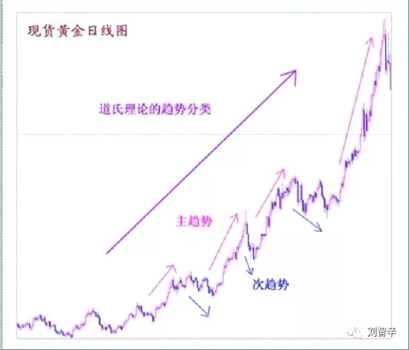 刘智辛:高阶投资高手,教你读懂《道琼斯理论》 根据道氏理论,市场价格运动有三种趋势,其中最主要的是基本趋势,即价格广泛或全面性上升或下降的变动情形。这种变动持续的时间通常为一年或一年以上,价格总升(降)的幅度超过20%。对投资者来说,基本趋势持续上升就形成了多头市场,持续下降就形成了空头市场。 价格运动的第