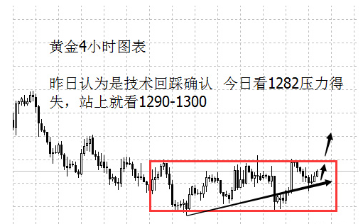 李兴淼:依然看好黄金突破压力测试1300美元的机会 在周一黄金自1266附近上涨测试到1283附近收线大阳后,昨日黄金按照笔者的理解是应该出现技术回踩走势并且关注下1275附近的支撑还是能够看涨的机会。不过昨日美盘出现两次砸盘下跌测试到1272附近,但是黄金最终收盘还是在1275以上并且目前来看继续在1278附近测试1280-82的阻